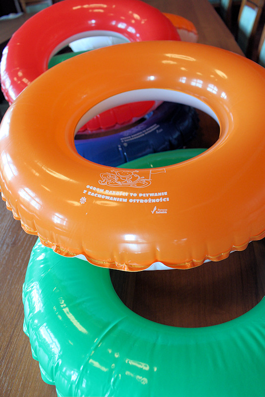 W ramach tych działań, nagłaśniając problem zagrożeń jakie niesie ze sobą woda jednostki terenowe Policji województwa zachodniopomorskiego wyposażono w elementy promujące bezpieczeństwo nad wodą (koła ratunkowe, naklejki-tatuaże dla najmłodszych a także znane nam już opaski bezpieczeństwa dla dzieci i osób starszych).