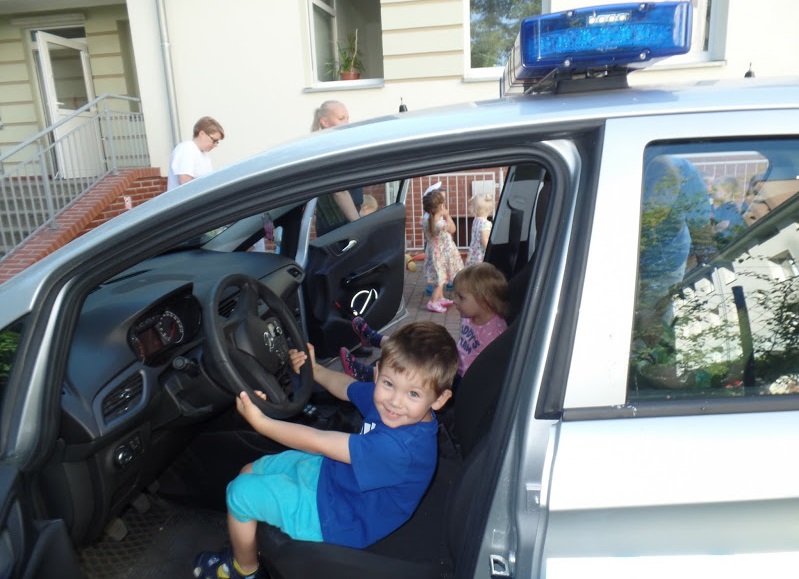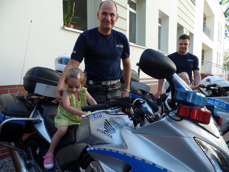 Duże zainteresowanie u trzylatków wywołało umundurowanie i wyposażenie policjantów. Dzieci miały okazję wsiąść do policyjnego radiowozu oraz na policyjne motocykle. Na pamiątkę spotkania dzieci otrzymały pamiątkowe tatuaże na rękę oraz opaski bezpieczeństwa z napisami "Ogrom radości to pływanie z zachowaniem ostrożności".