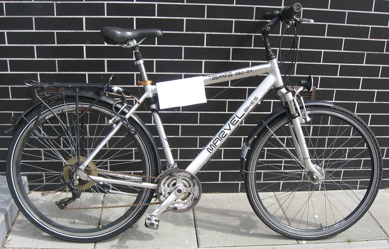 2. rower marki MARVEL BIKES koloru srebrnego z zapiętym tylnim kołem