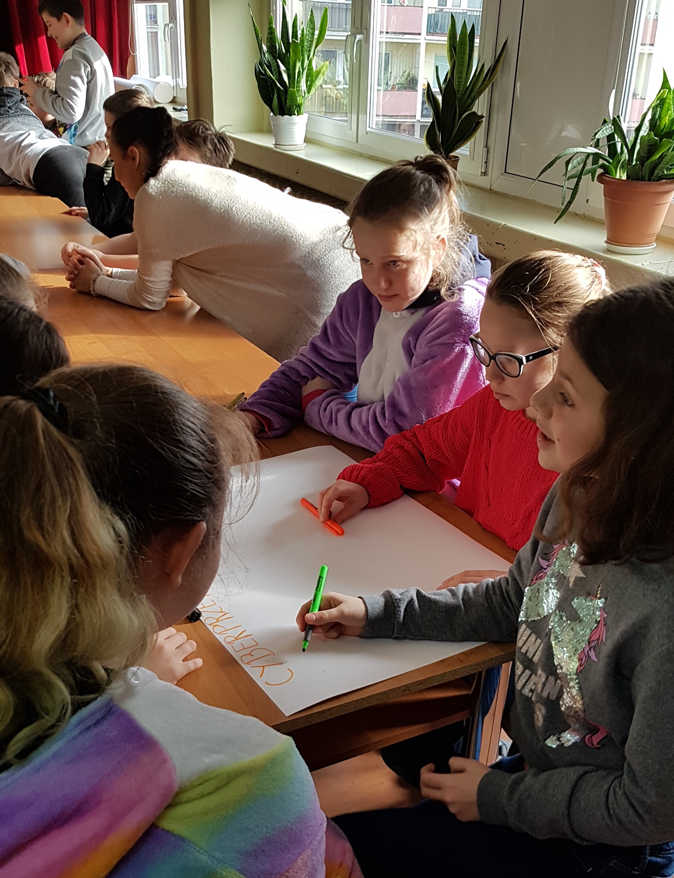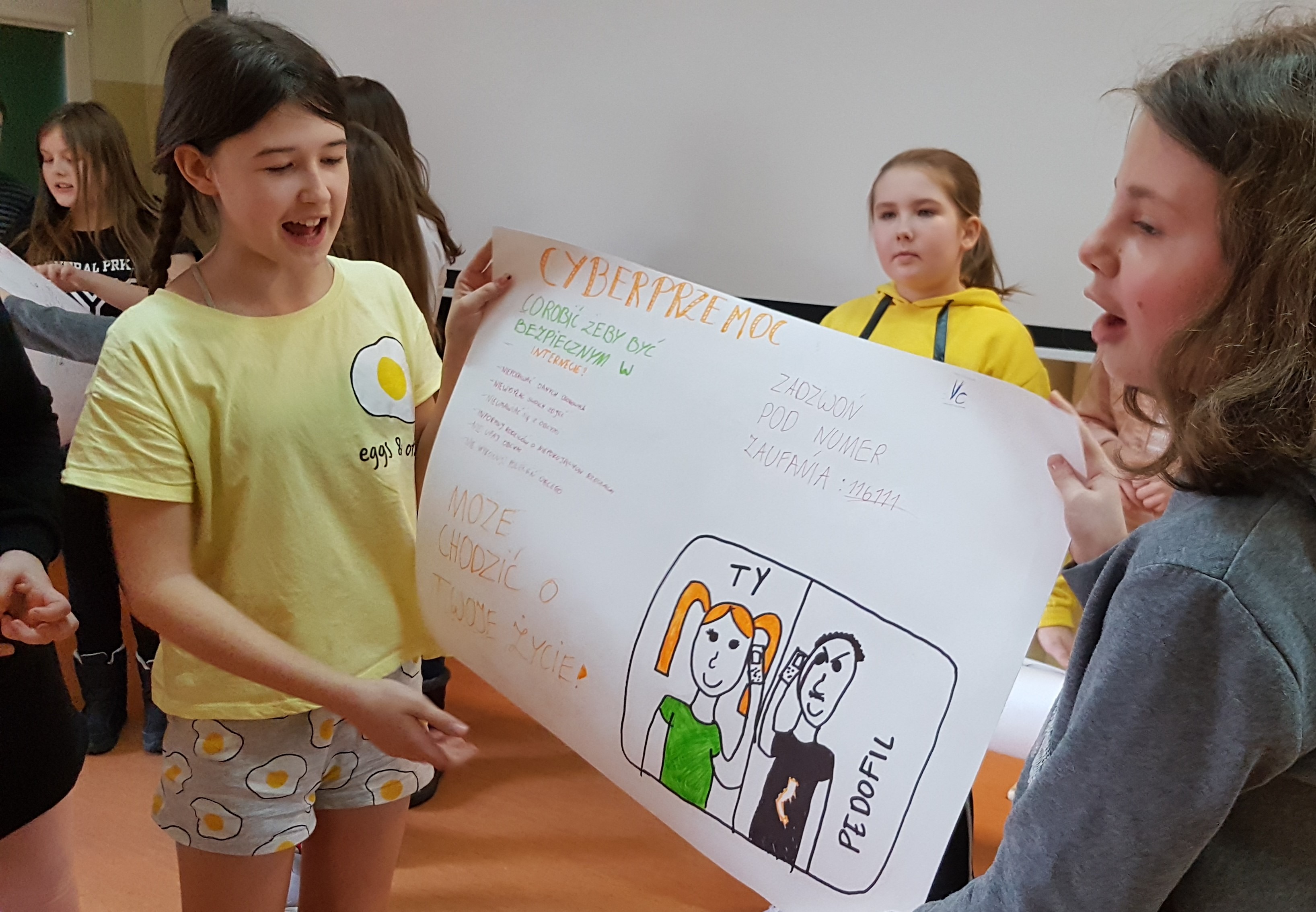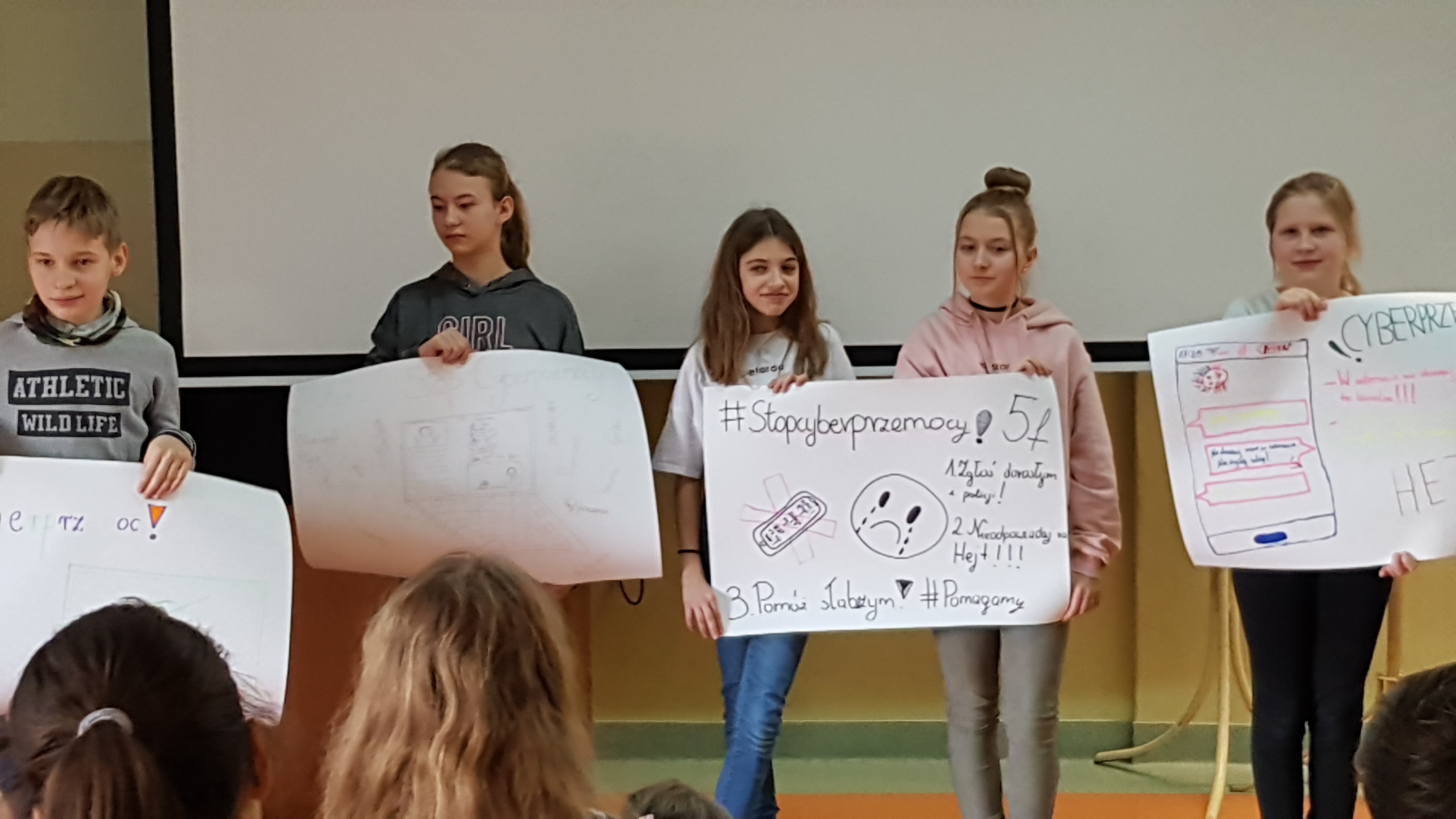 Uczniowie aktywnie uczestniczyli w spotkaniach, chętnie dzielili się swoimi spostrzeżeniami. W trakcie zajęć malowali plakaty dotyczące cyberprzemocy i zagrożeń z nią związanych.